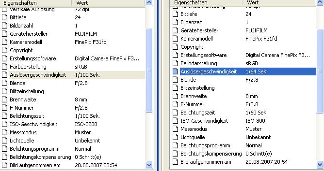 wenn man das bild auf den pc gespeichert hat dann rechtsklick -> eigenschaften -> Dateiinfo -> erweitert. dort stehen doch die eigenschaften die ihr wissen wollt? hab ja kA was für einstellungen ihr sucht und wenn net, dann hab ich nix gesagt
