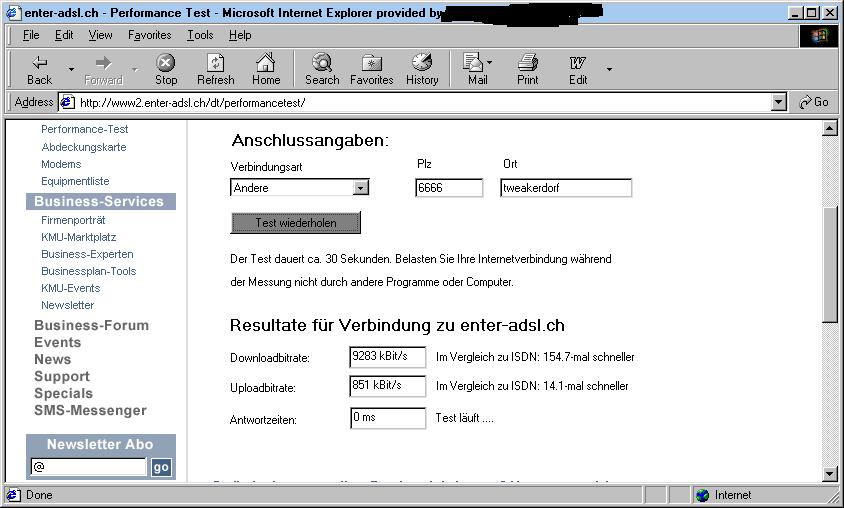 Das kann nicht sein, macht mal den Speedtest auf http://www.enter-adsl.ch, der ist viel realer und spuckt glaubwürdige Ergebnisse aus.link funzt nicht. da ist ein Koma zuviel.