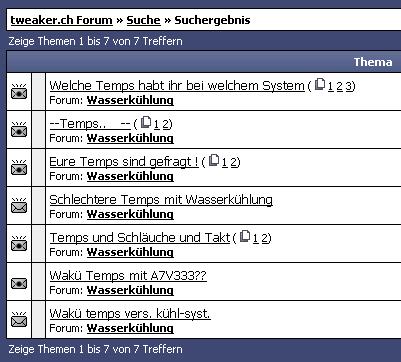 wenn du das Wort "temps" im Titel (o "Nur Betreff durchsuchen") suchst im Unterforum "Wasserkühlung" und die Ergebnisse als Threads anzeigen lässt, kommt folgendes raus ![]()