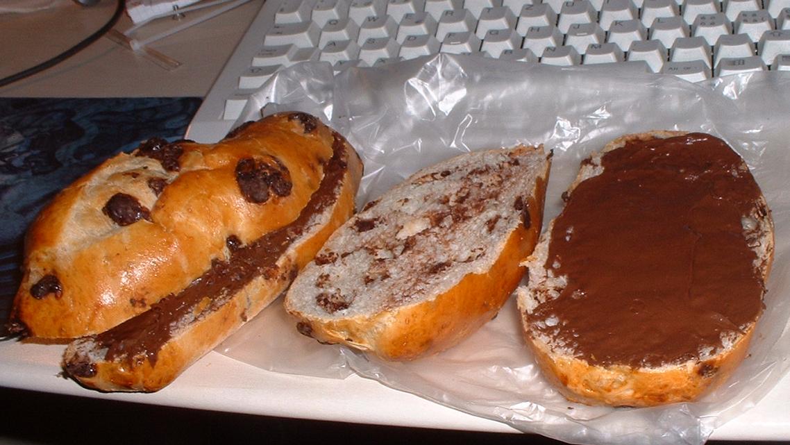 • ach ja ... diese Schoggibrötli haben echt zuuu wenig Schoggi drin ... muss man halt modden mit Nutella ;)