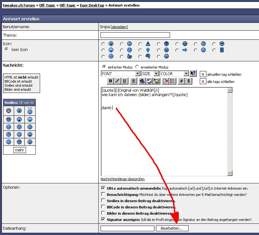Aber wie kann ich jetzt das Tei anhängen?? Ich klicke auf "Bearbeiten", doch da passiert gar nichts, es öffnet sich nix etc.