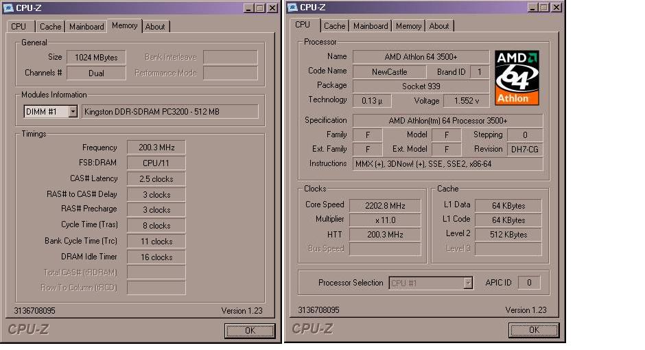Ich habe 2 x 512 MB Kingston Hyper X CL2, wenn ich jedoch im Bios das Ram auf CL2 schalte bekomme ich immer Bluescreens! Deswegen muss ich den immer auf Auto stellen.