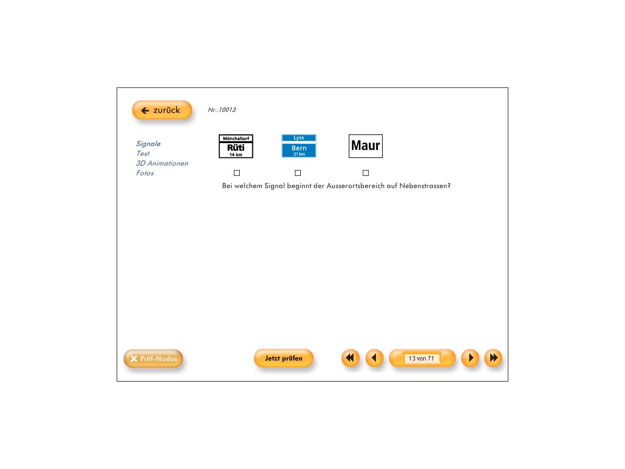 Bei dieser Frage soll laut dem Programm das mittlere, blaue Zeichen richtig sein. Kann mir das einer bestätigen, weil blaue Tafeln sind ja Hauptstrassen.