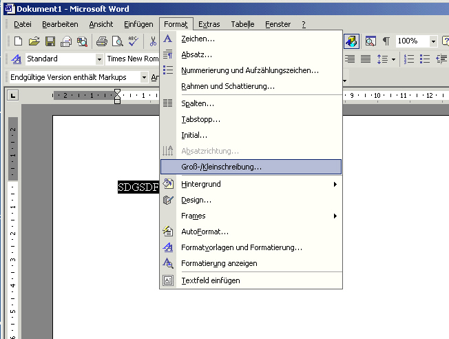 Gibt es eine Möglichkeit, wie man diese Schrift wieder klein bekommt, ohne sie neu zu Tippen?