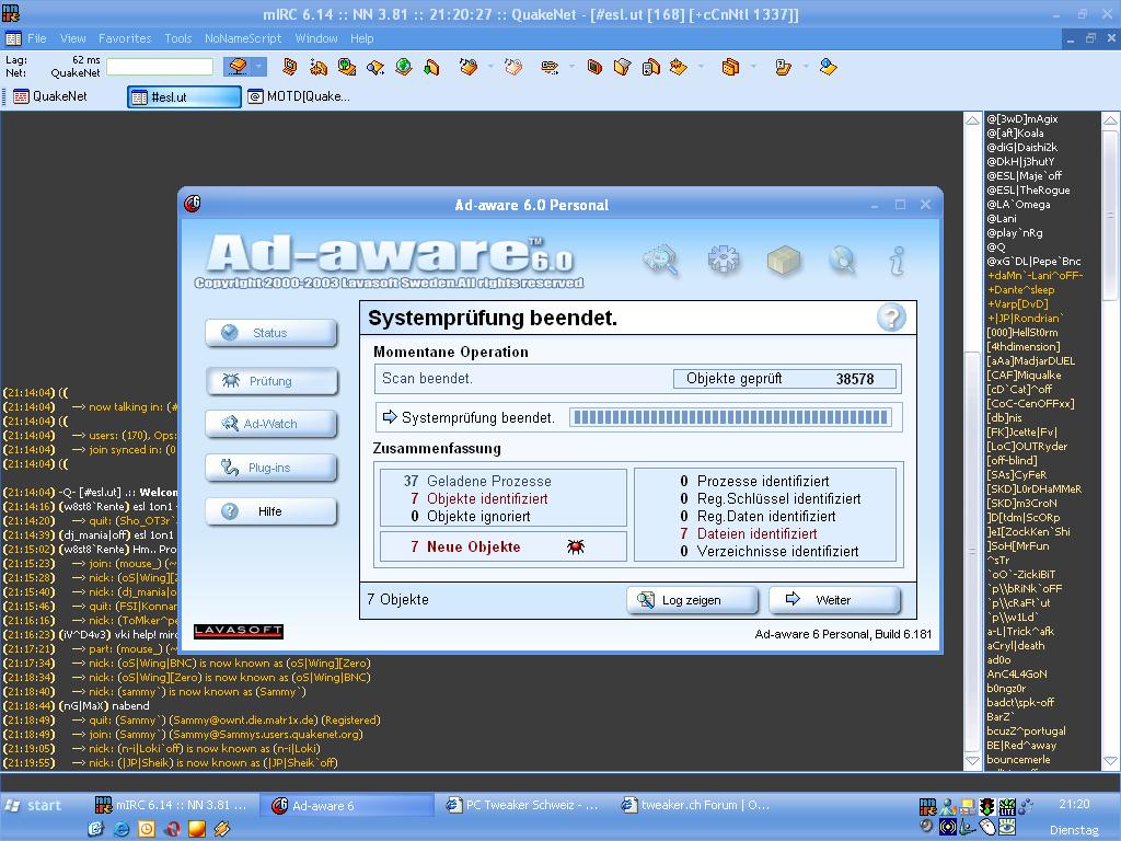 hehe..glück gehabt :)..auf dem Win98 hatte ich ca. 2 käfer gefunden...mein system ist irgendwie undicht
