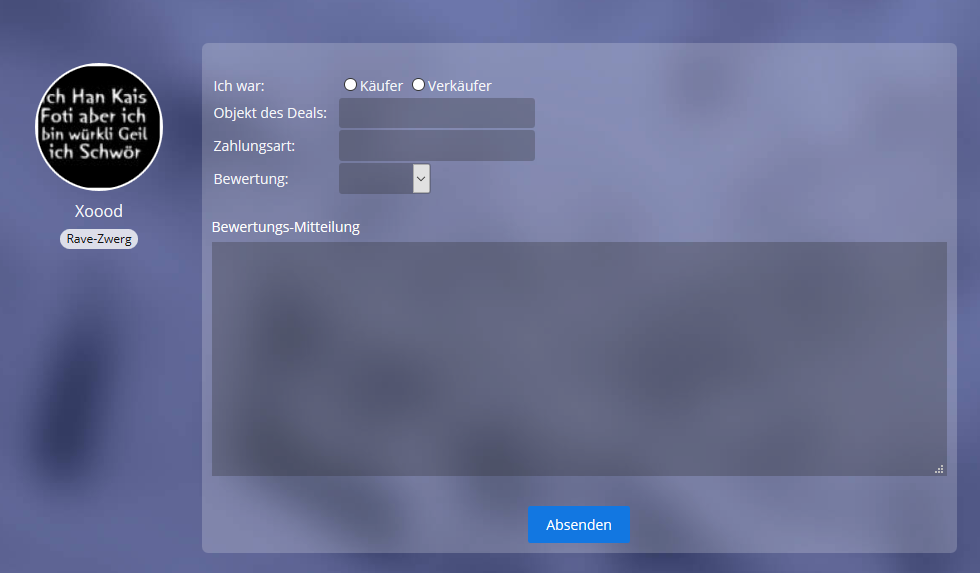 Ab sofort kann man wieder Bewertungen erfassen. Einfach den zu bewertenden User aufrufen, dann auf die Lasche "Marktplatz-Bewertungen" und ganz nach unten Scrollen (analog neuer Post im Forum)