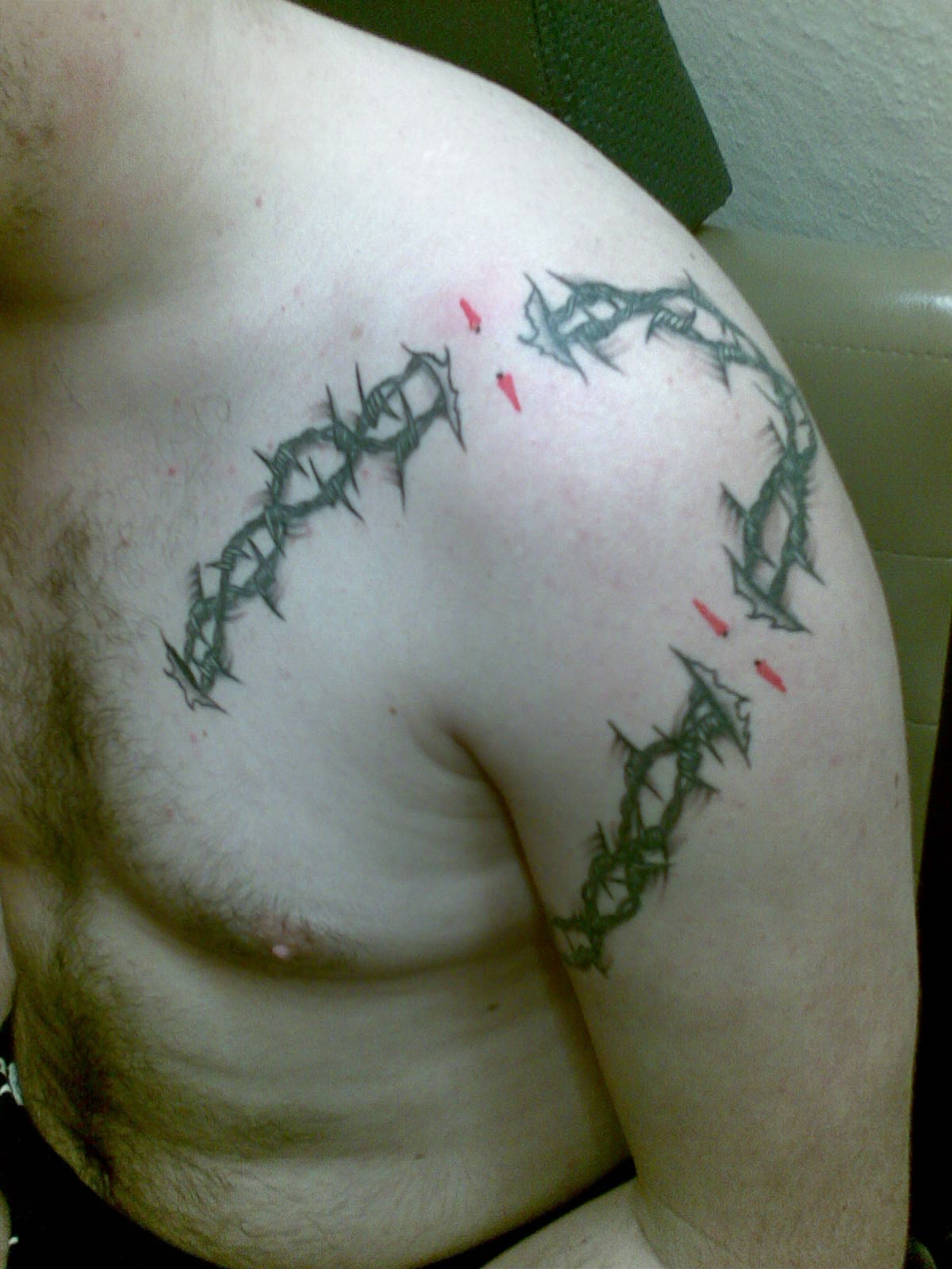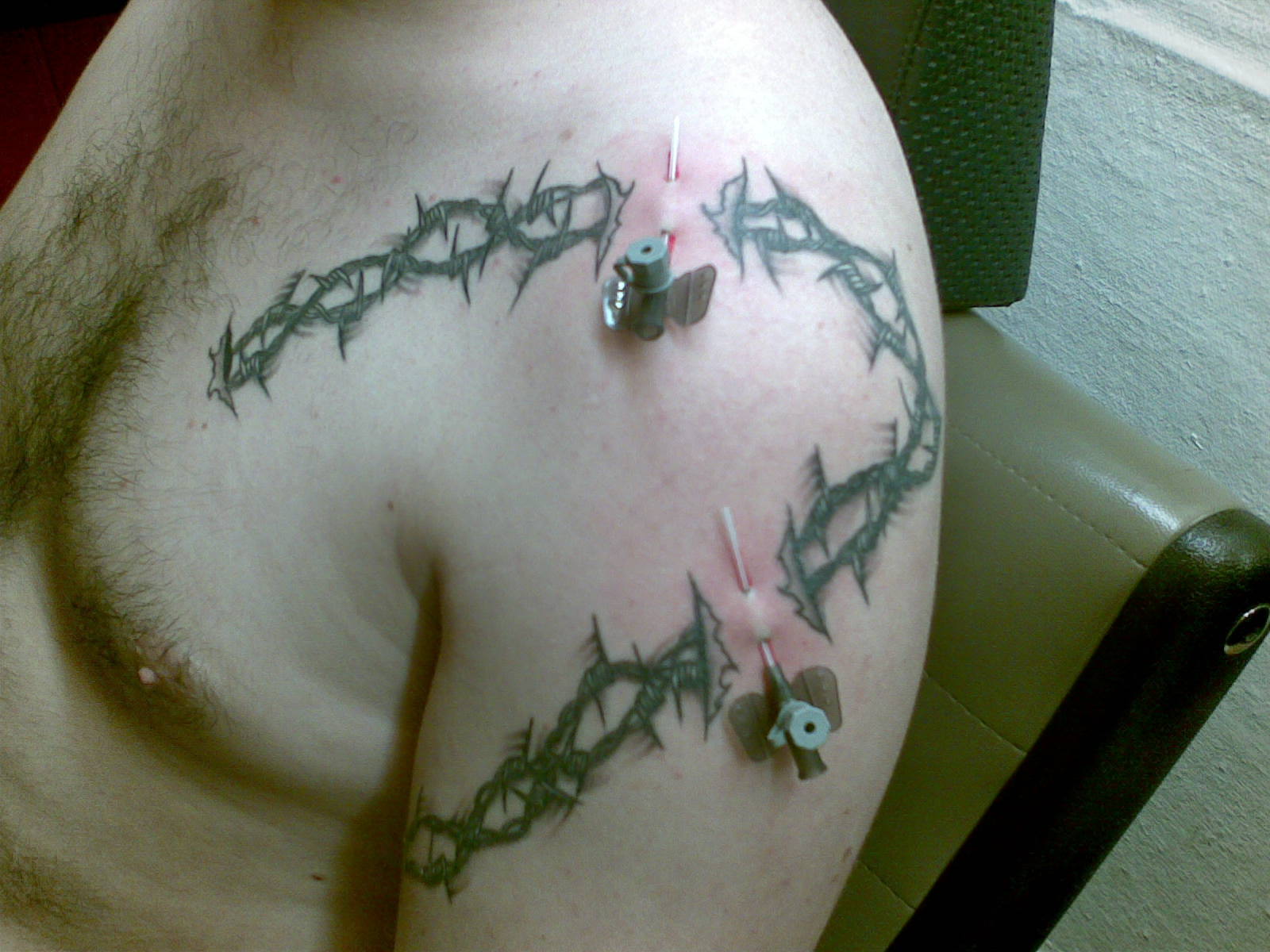 mein stacheldraht ist nun fertig, und gefällt mir persönlich sehr gut. Wird wohl noch besser, wenns denn abgeheilt ist...