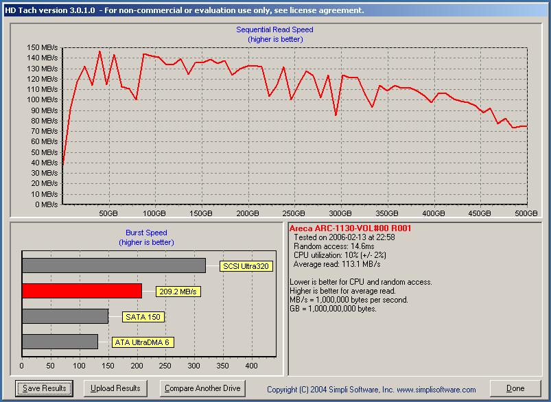 Die Durchsatzrate ist auch nicht schlecht für ein Raid 6 Array.