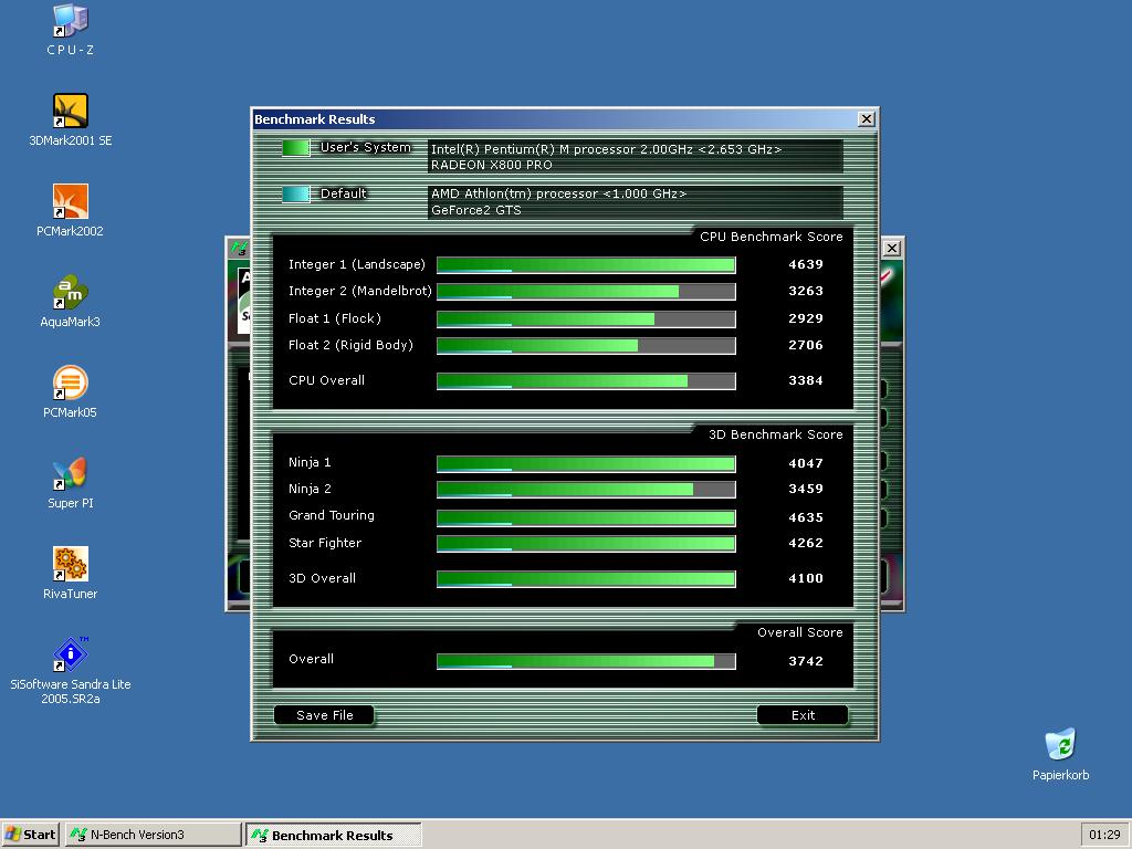 geile Score! Verstehe auch nicht, warum so wenige Pentium M's haben... sind momentan die wohl mit Abstand besten CPU's, aber keinen interessierts