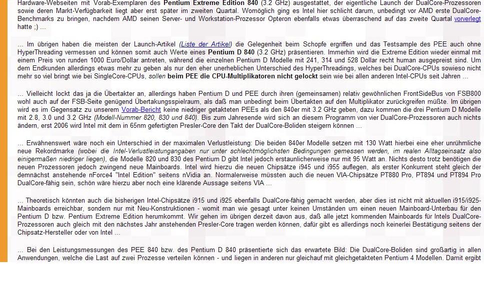 ...oops, steht da etwa: "(wobei die Intel-Verlustleistungangaben nur unter schlechtmöglichsten Bedingungen gemessen werden, im realen Alltagseinsatz also einigermaßen niedriger liegen)" :D