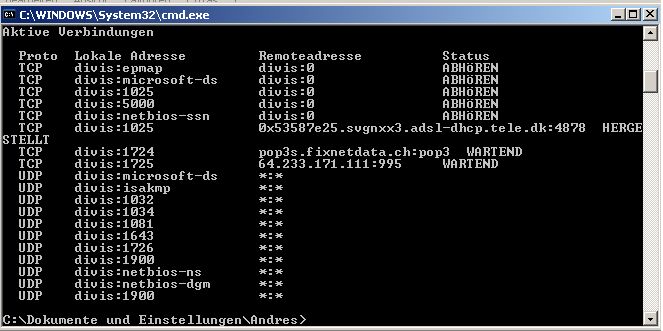 der adsl-dhcp.tele.dk ist doch verdächtig, es sei denn, du weisst dass du irgend eine Verbindung mit einem dänischen ADSL-Kunden hast. Oder sonst irgend ne Verbindung die was mit Dänemark zu tun hat.