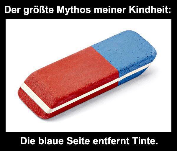 Der grösste Mythos? Eher die grösste Lüge. Das Scheissding hats nie hingekriegt Tinte zu entfernen. Dafür gabs Löcher im Papier.Dann war die Tinte doch weg, oder nicht?