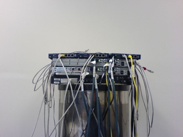 Nun diese einzelnen Router waren mal Ausstenstellen-Router, also der Kunde hatte 75 Aussenstellen die am Netzwerk dran hingen. Jetzt wurde auf HardwareVerschlüsselung umgestellt und diese Router haben einen HardwareBug der dies nicht zulässt. Also mussten alle ausgetauscht werden und diese werden zurückgeschickt. Jetzt muss aber auf allen die Config gelöscht werden und daher wurden alle zusammengeschlossen.