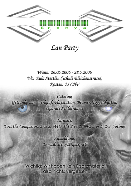 Falls der Flyer noch nicht gedruckt ist, würd ich das "Logo" nochmals anschauen, man sieht erst beim dritten mal hinsehen wie denn die LAN nun heisst.