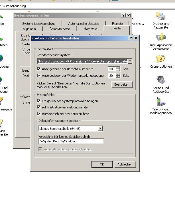 Wenn ich jedoch nichts wähle,bootet der PC nach 30Sek. neu.Ein Counter zählt dann die 30 sek. ab.
