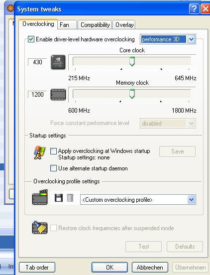 wenn dir die GraKa wichtig ist, lässt du's einfach auf 100%, da dies die Lüftersteuerung ist. willst du lieber ne laute GraKa oder ne verbratene? mir ja egal ...