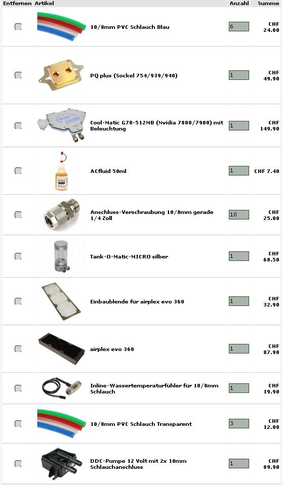 Also am besten schaust du für Wakü Teile mal bei Xtreme-Cooling.ch vorbei