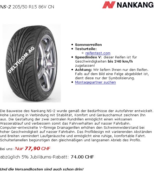 Fazit: Der Nankang NS.2 ist ein einwandfreier Sportreifen welcher bis jetzt keine Schwächen aufweist zum absoluten Spitzenpreis! Werd ich sicher wieder kaufen!