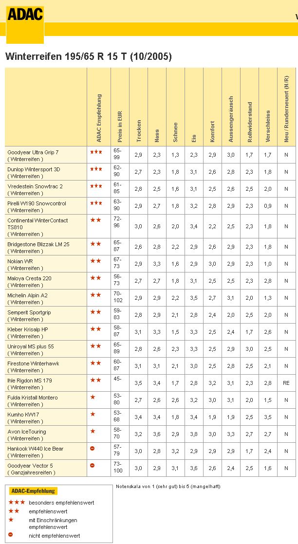 Dafür liegt der Nassgrip mit 2.3 und der Grip auf Schnee/Eis mit 1.3/2.3 wesentlich besser als beim Pirelli mit 2.7 bzw. 1.8/3.2!