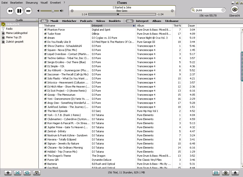 [*]Da alle MP3 nach dem Import in einem riesen Pool namens "Musik" liegen, verliert man den Überblick. Man kann auch nicht nach Künstler UND Album sortieren!