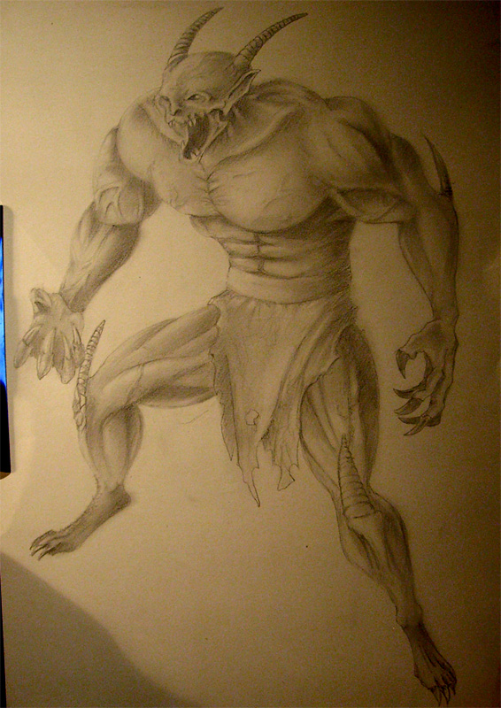 Na schön. Ich habs mal mit abzeichnen versucht(1.Bild). Jedoch habe ich immer Probleme mit den proportionen. Uuuund die Gedult dazu habe ich auch überhaupt nicht. WIe man am ersten bild unschwer erkennen kann