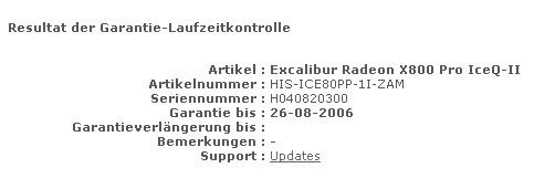 • Habe eine HIS Excalibur X800 IceQ II hier im Forum gekauft, weiss aber nicht mehr von wem, da ich meine PN's aufgeräumt habe (bzw. aufräumen musste, wir haben viel zu wenig Platz dafür :schimpf) und die läuft nicht (kein Signal).