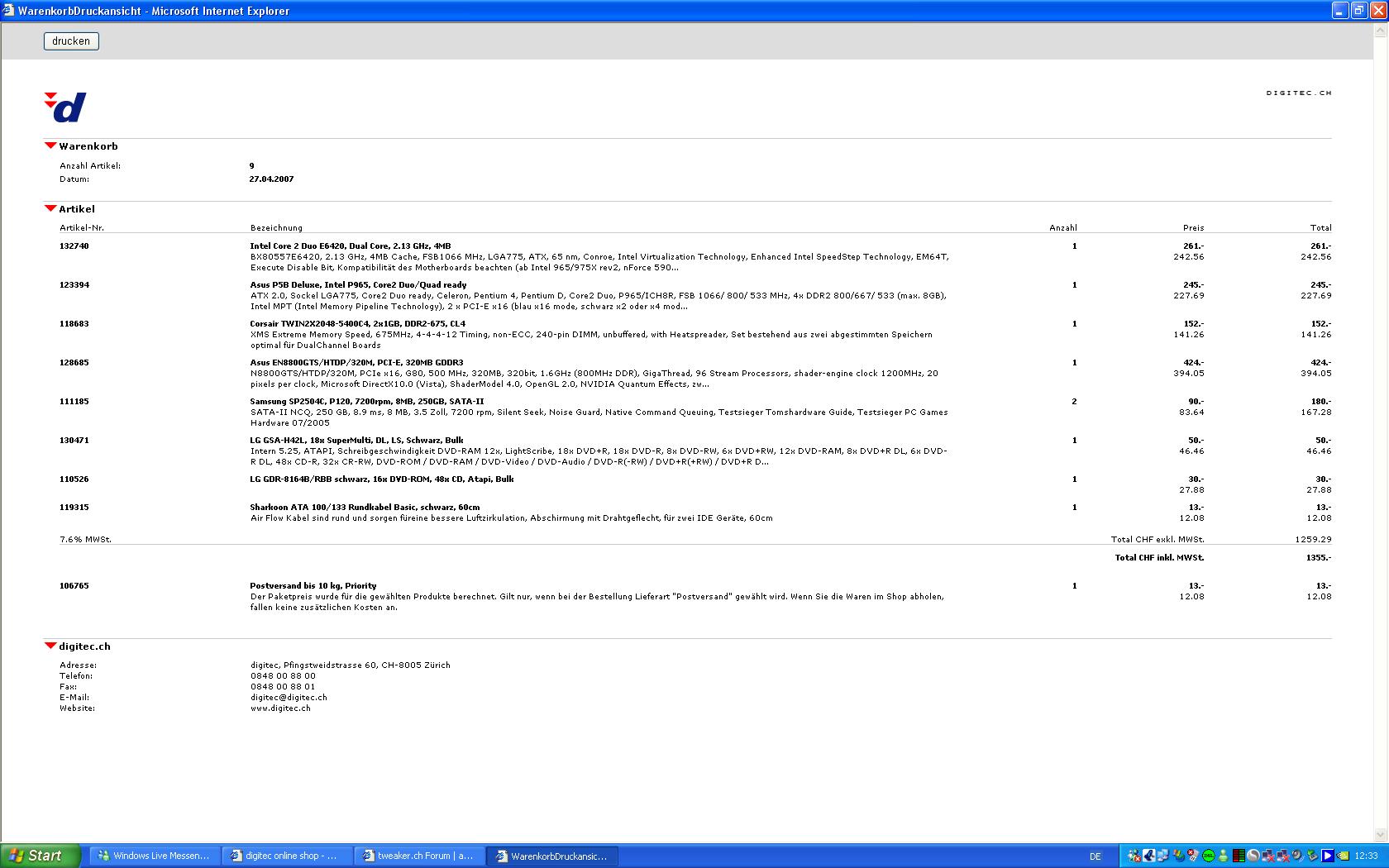 Ram werd ich wohl zu 4*1gb corsair ram 667mhz die ich vorher schon auswählte