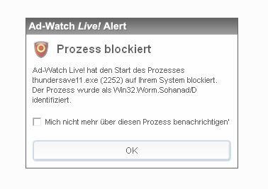 Seit ich Adaware instelliert habe, wird aber die Ausführung von Thundersave mit einer Wurm-Meldung geblockt (s.u.).
