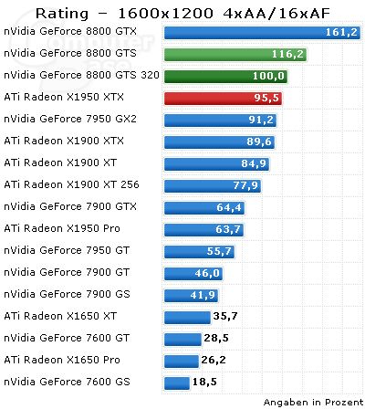 Die Leistung liegt bei den meisten Anwendungen oberhalb einer nVidia GeForce 7900GS/7900GT/7950GT (Preisbereich >300.-)!