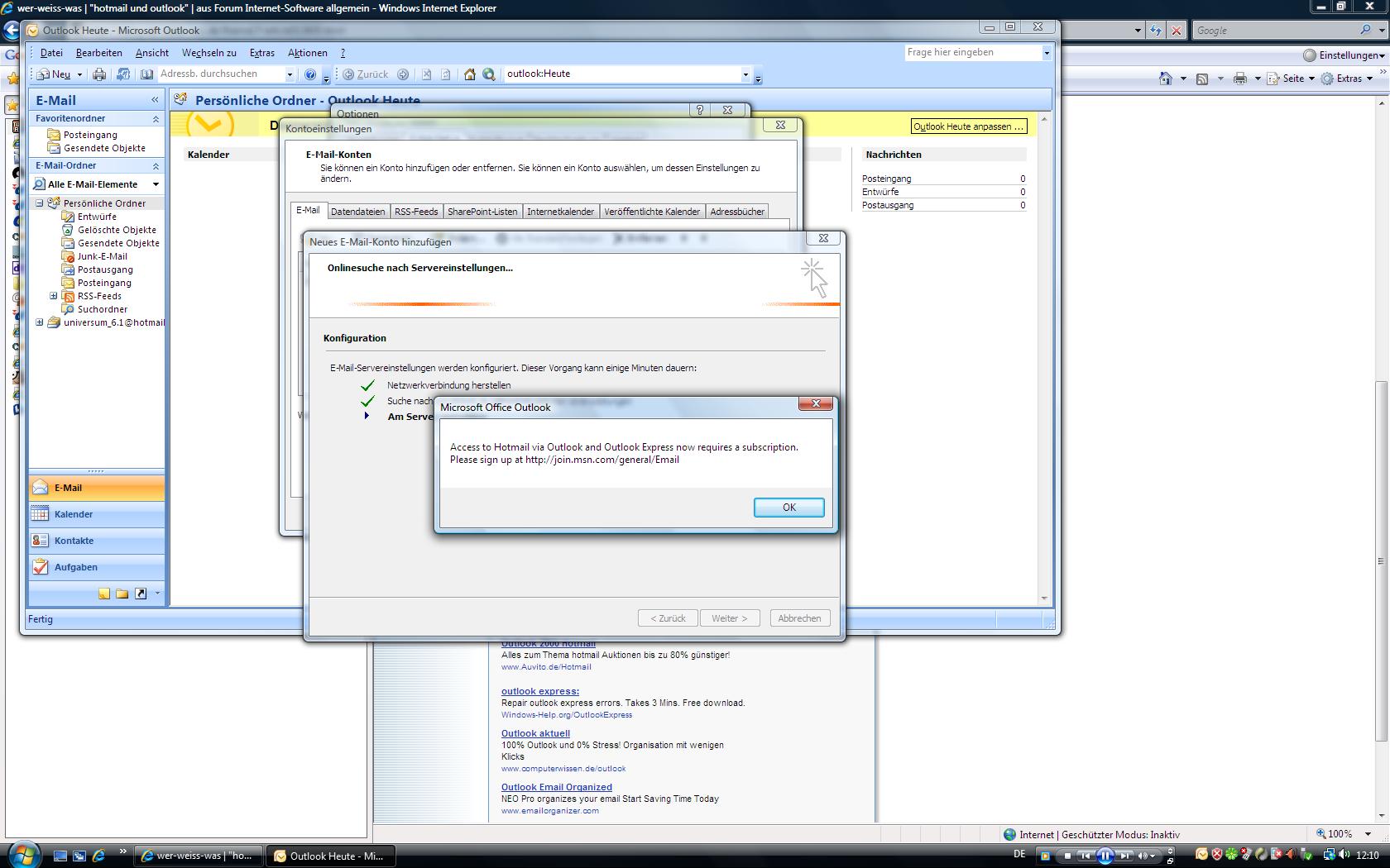 Ich hab eine Email Adresse von hotmail...nun möchte ich gerne diese beim Outlook hinzufügen doch es kommt immer ne Meldung...siehe Bild.