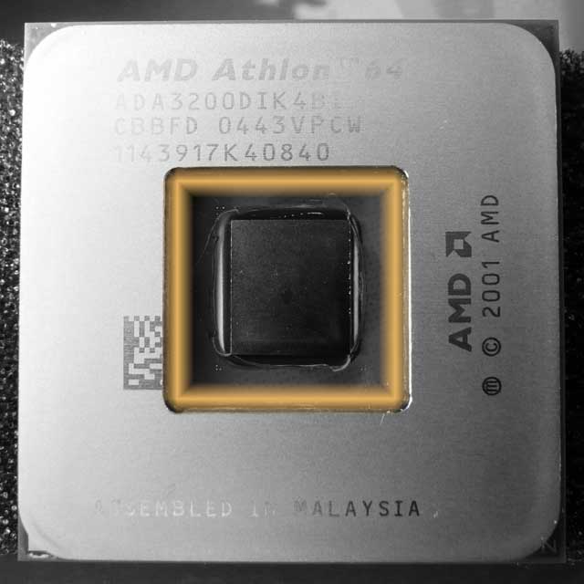 Lang lang ists her – es war im Jahre 2004 –, da hatte ich den Versuch gestartet, meinen damaligen T'Bred 2700+ (Sockel A) mittels DirectDie-Kühlung zu kühlen. Dies bedeutet, dass die Flüssigkeit des Kühlkreislaufes direkt das Die spült und sich keine Kupferplatte dazwischen befindet.