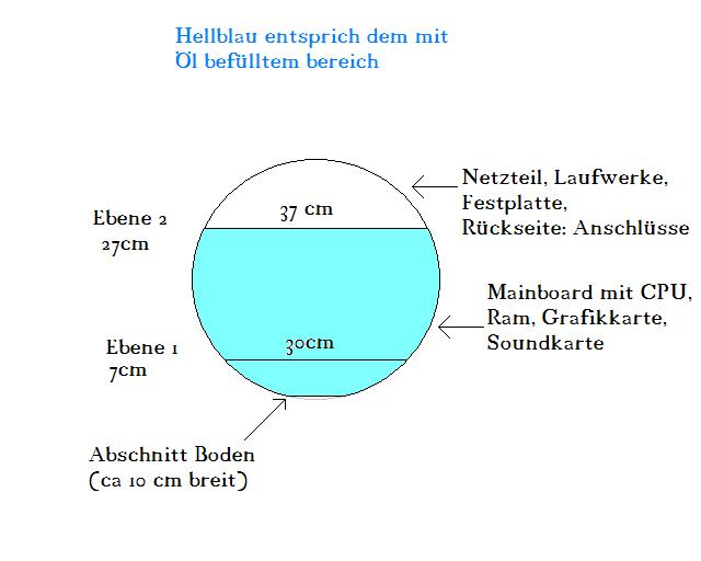 In meinem PC ist das Mainboard(CPU, Graka, Ram, Soundka ;-P ) vollkommen im Öl getaucht.