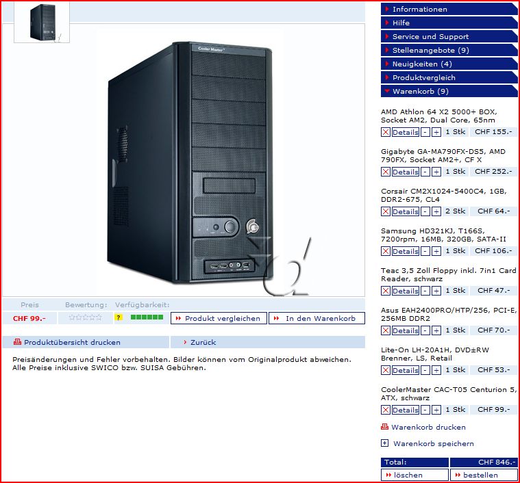 Habe letzhin einen PC mit 2GB DDR2-667, 45 Watt AM2 CPU,Arctic Cooler M2A-VM, 400 Watt Seasonic, 250GB HD für ca 550 für meinen Vater zusammengestellt. Das Teil ist super leise und erfüllt seinen Zweck ( Microsoft Virtual PC, 2D CAD) mit Vista drauf.
