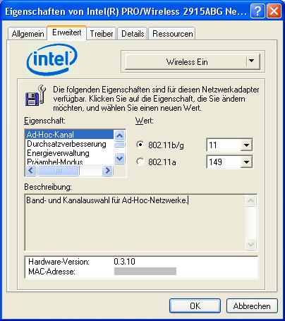 Intel PRO/Wireless Mini-PCI Wireless LAN-Modul