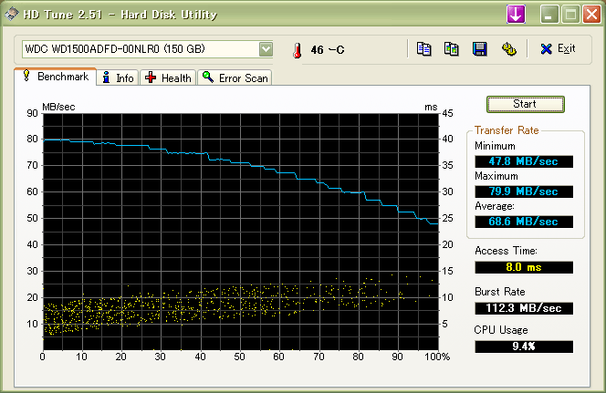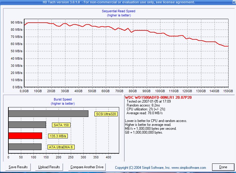 Das liegt schon ein gutes Stück über einer 74GB-Raptor, sogar über der 150er - das sind ständig 15-35MB/s mehr!