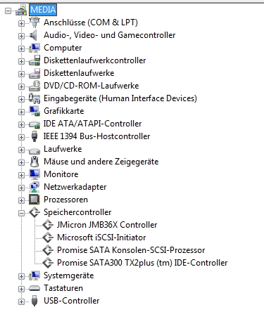 Hab im Keller noch einen Promise SATA 300 TX2 Controller gefunden und den mal in meinen Vista Rechner (32 Bit) reingeschmissen: Treiber wurde automatisch installiert und das Teil taucht im Gerätemanager auch auf (siehe Anhang).