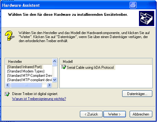 so siehts aus, wenn ich im Windows den Treiber installen will: