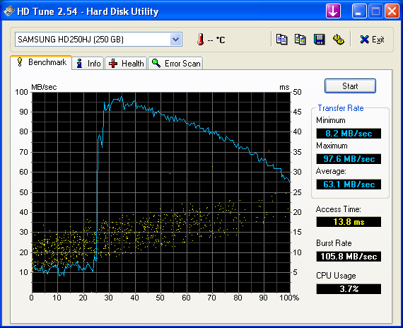 • Die Transferrate ist auf den ersten fast 30% auf 10%! Die müsste auf rund 100 MB/s beginnen! :kotz
