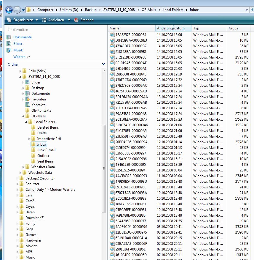 Aber wie sichere ich nun am besten die Mails? Mit "Exportieren" nimmt's mir irgendwie nicht alle Unterverzeichnisse im OE6!