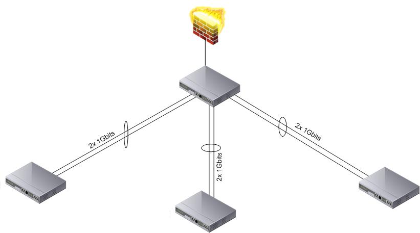Du nimmst einen 48 Port.. und 3 weitere 48 Port switche welche Du via ethernet-channel oder auch LAG genannt mit 2mal 1Gbits auf den Core anbindest...