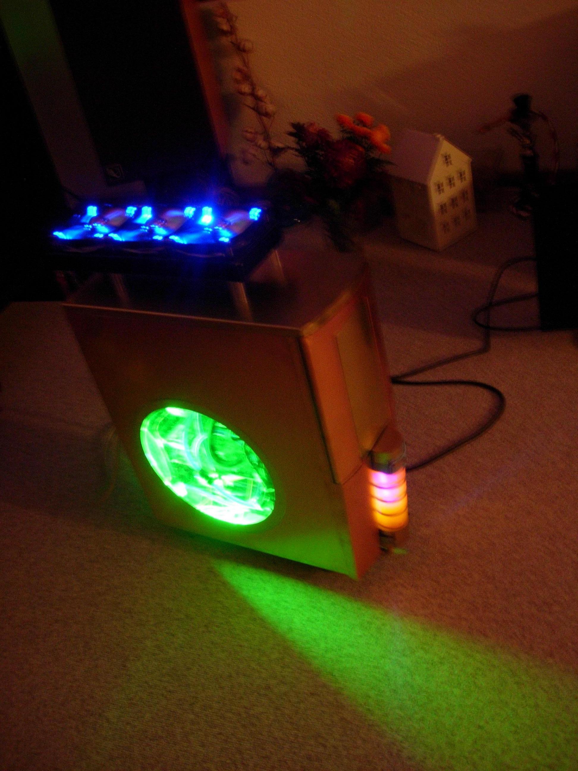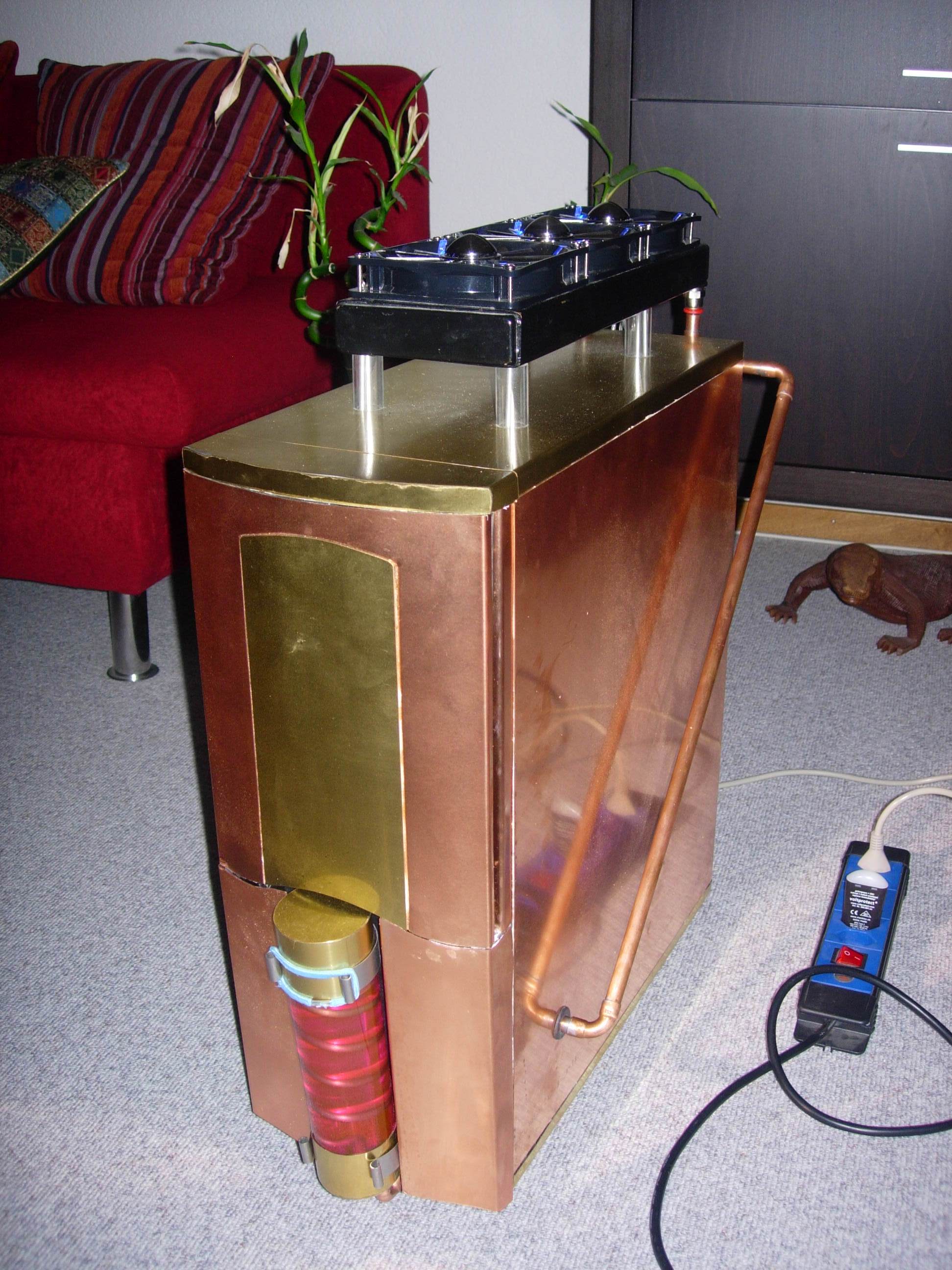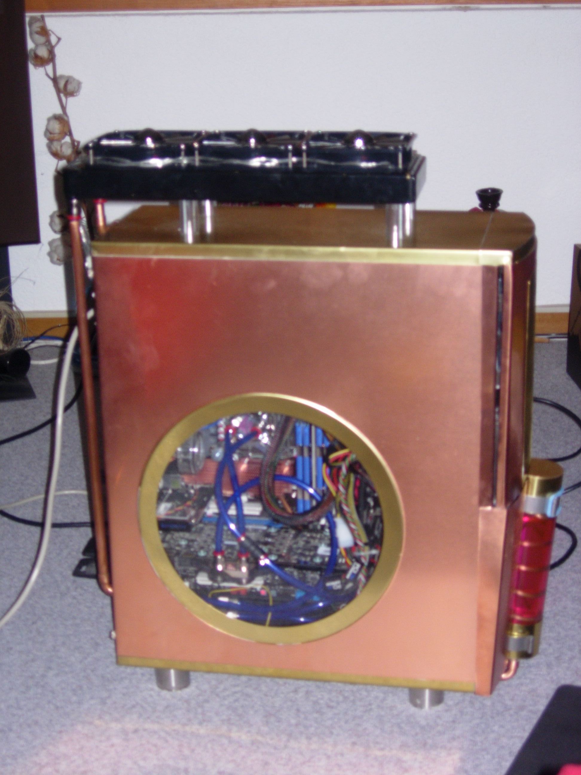 Der CPU und die Grafikkarte sind wassergekühlt wobei das wasser auserhalb des gehäuses durch Kupferrohre fliesst