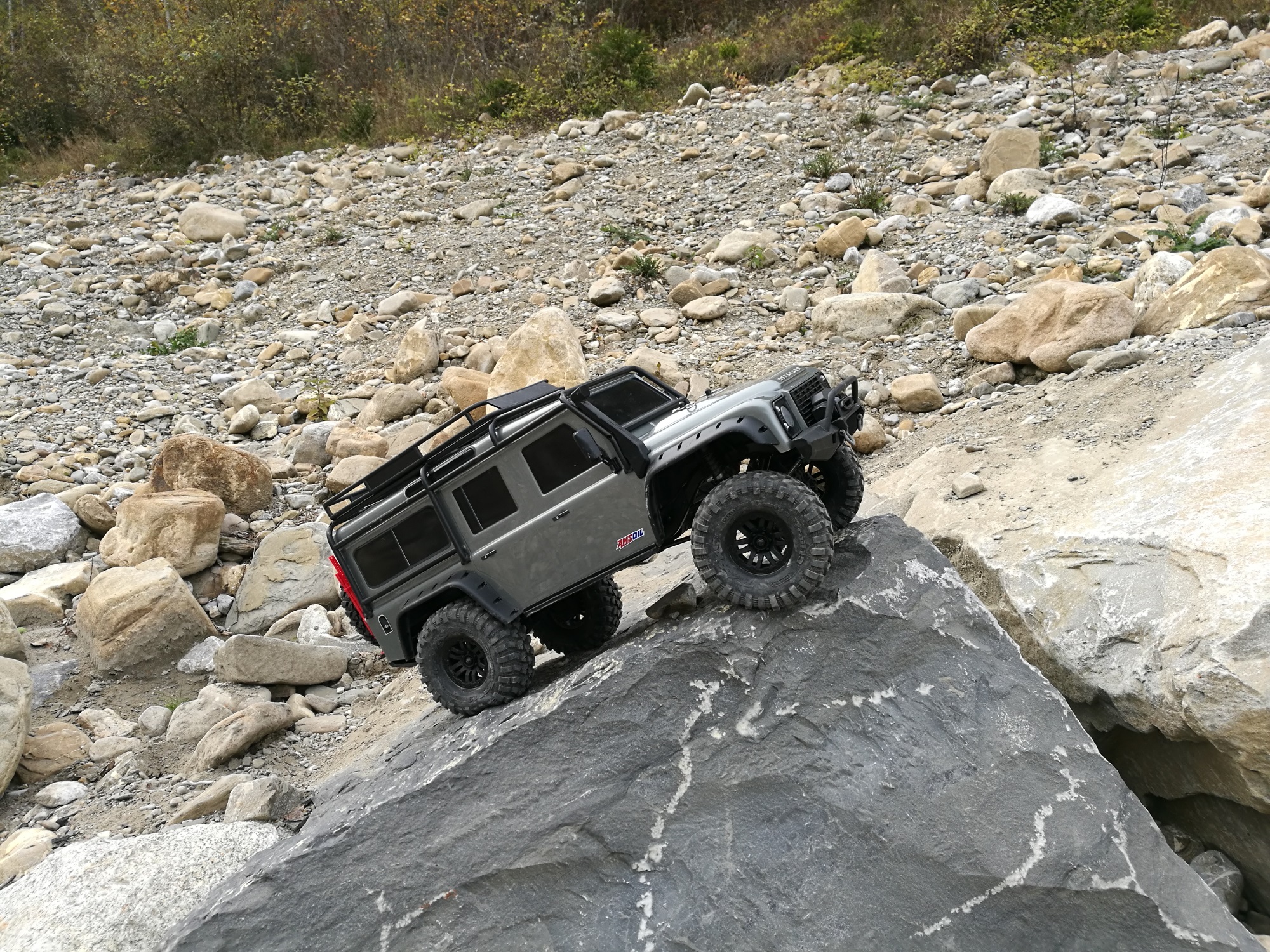 Der Traxxas TRX-4 Landrover Defender Scale Crawler befindet sich neu in meiner RC-Garage. 2 Gänge sowie Diffsperre vorne und hinten, alles bedienbar über die Fernsteuerung. Das Ding ist zwar ziemlich langsam, aber es macht unheimlich Spass damit knifflige Offroad-Sektionen zu meistern! ![]()
