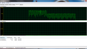 Als Kabel wird vom NAS zum Switch ein 3 Meter Cat5e kabel eingesetzt, vom PC zum Switch ein Cat5(e) Kabel mit selbt gecrimpten stecker (sollte aber OK sein). Das Kabel vom PC zum Switch verläuft entlang des Stromkabels vom PC (3x1,5mm2, ca. 150W)