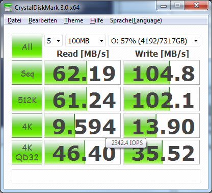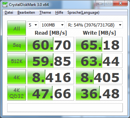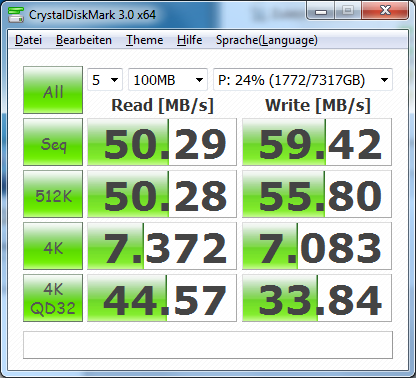 Also die 79 MByte/s sind eigentlich ganz realistisch gesehen super. Die 59 MByte hingegen nicht. IDR ist lesen bei einem RAID5 schneller als schreiben.