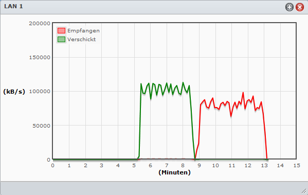 Sieht gut aus! ~95MB Download und 70MB Upload auf die Synology.