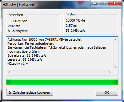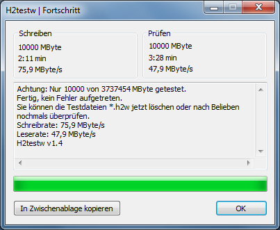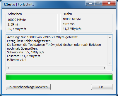Im moment habe ich allerdings "nur" 55,7MB (write) und 41,2MB (read)