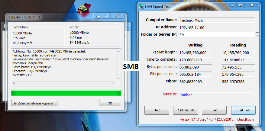 An was kann das Liegen? Dass nicht umbedingt 100MB/s drin sind ist mir klar, aber in den meisten Reviews kommen sie mit RAID5 doch nahe an die 100MB/s.