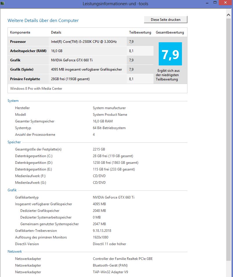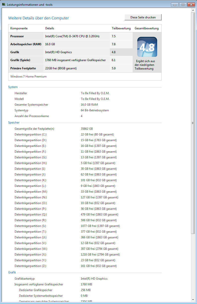 man gibt einfach "Leistungsinformationen und -tools" ein, klickt auf "Detaillierte Leistungs- und Systeminformationen anzeigen und drucken" und macht dann nen Screenshot von der Zahl hinter "Gesamtgröße der Festplatte(n)" ![]()