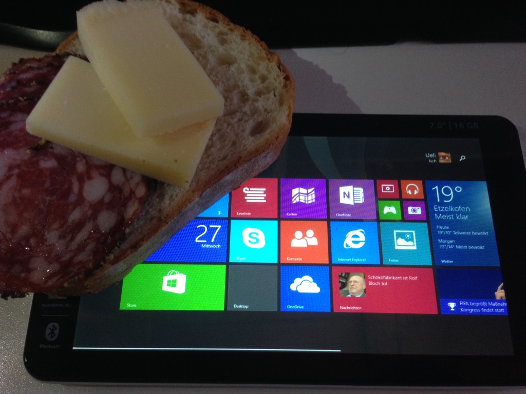 Das Tablet eignet sich übrigens prima als Frühstücksbrettchen.