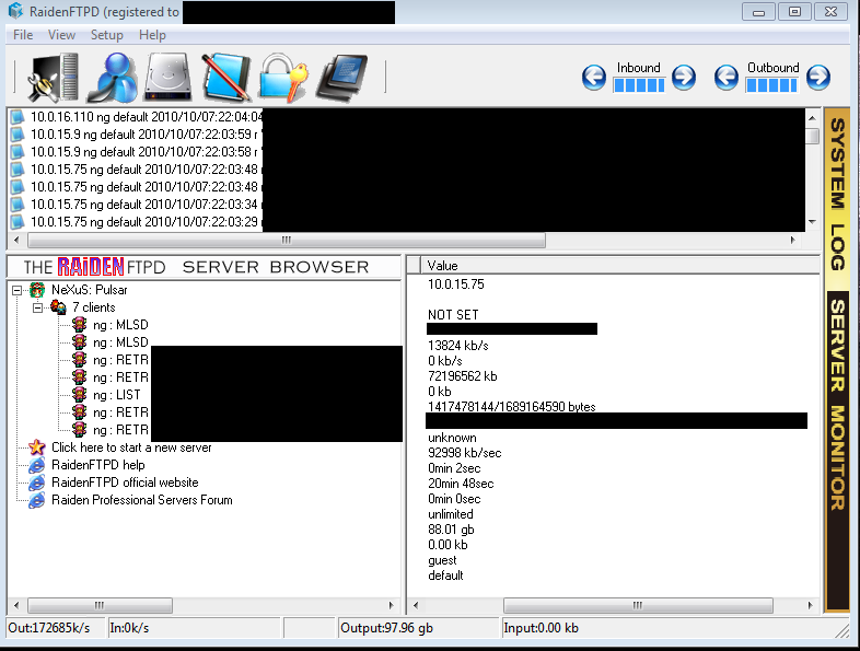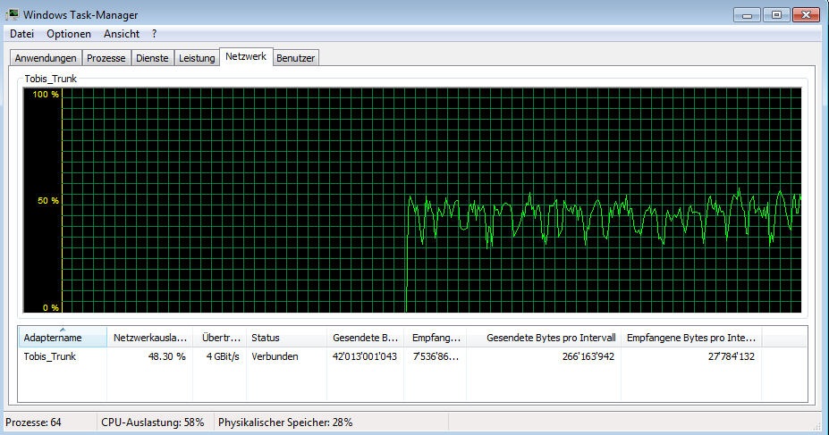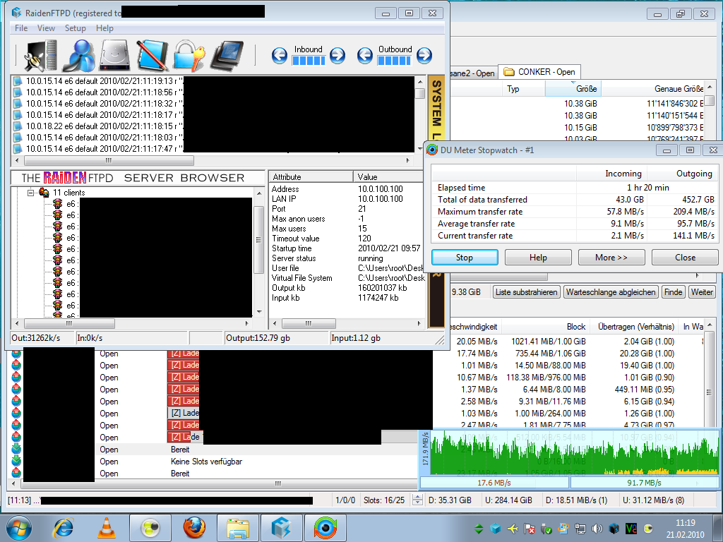 Der Coreswitch schien mir aber schon etwas überlastet zu sein, die Leute haben grad mal mit 3 - 5 Mbyte/sec. ziehen können. Zusammen max. so 15 MByte/sec.